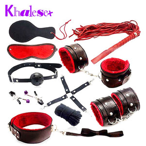 Khalesex 10 Pcs/set Sex Bondage Fetish Restraints Slave Woman Adult Sex Toys for Couples Handcuffs Whip Rope Eye Mask Sex Shop
